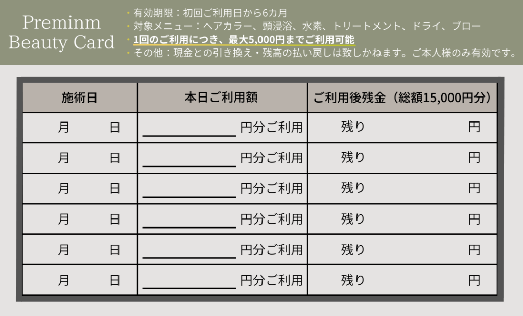 ビューティーカードをご購入いただいたお客様には、高額となる料金を前払いでお預かりするため、次回のご予約をお取りいただくか、予約の空き状況をご確認いただける公式LINEへのご登録をおすすめしております。